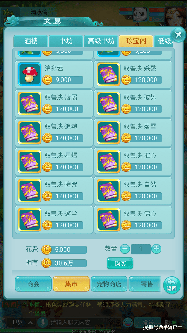 手游巴士(www.shouyoubus.com)2025年12月17日:在《逍遥情缘》手游商店的珍宝阁中,有一类道具价格尤为醒目,那便是标价高达12万金币的“驭兽诀”。这些价格堪比顶级高级兽诀的道具究竟有何妙用,竟敢定此高价?其实,驭兽诀是坐骑专用的技能书,能为被统御的宠物带来巨大增益。