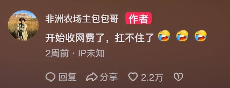 一个叫“非洲农场主包包哥”(以下简称:包包哥)哭着表示,别说是盈利了,现在连网费都收不起,扛不住了。