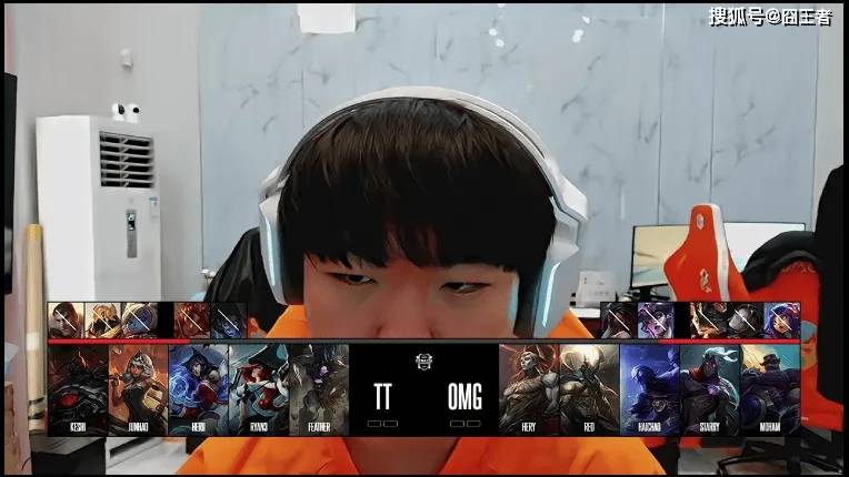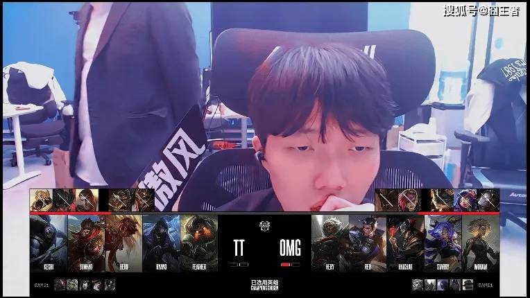 第一局比赛,TT蓝色方,禁用:杰斯、沙皇、波比、岩雀、塞拉斯,选用:Keshi塞恩、Junhao奇亚娜、Heru阿狸、Ryan女枪、Feather牛头;OMG红色方,禁用:兰博、发条、妮蔻、辛德拉、阿卡丽,选用:Hery、re0潘森、Haichao瑞兹、Starry维鲁斯、Moham布隆
