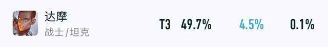 49.7%胜率+4.5%出场率,虽然有点冷门,但起码真爱玩家还没有完全放弃,高分段也偶尔会出现达摩的身影。