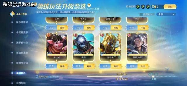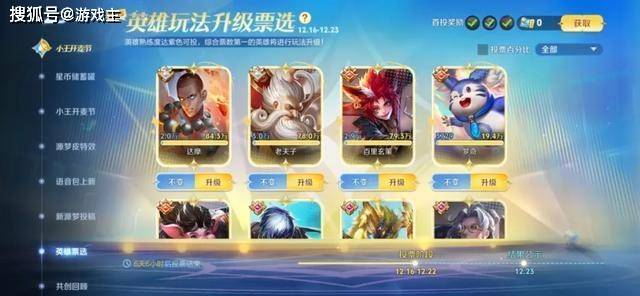 大家好,12月16日上午9点,策划开启了全新的英雄玩法升级投票。