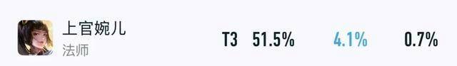 上官婉儿才是真正的最大黑马,毕竟她的巅峰赛出场率虽然低,但胜率却长期高于51%,没有T2也至少有T2.5的强度。