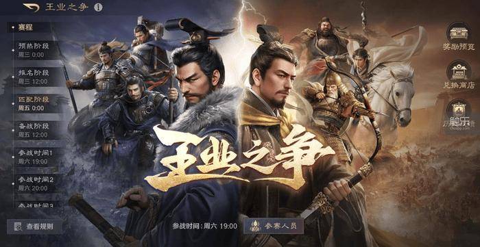 具体来说,在“王业之争”中,玩家可以选择职业,并在同盟内部组队,每队为45名主力加10名替补。组队并完成匹配后,队伍进入战场。战斗被限定为48分钟(3分钟准备,45分钟战斗),玩家可以通过占领城池、屯垦农庄、尽量运送等方式为自己和所属阵营获取积分。最终,积分更高的阵营将获得胜利。