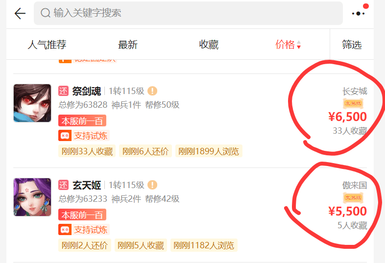 如果想打架,追求战力排名的,也可以考虑5K~6K的成品号,叶子猪建议买号要慎重,可以多收藏几个号对比一下,然后找号主讨价还价,争取最优惠的价格拿下。