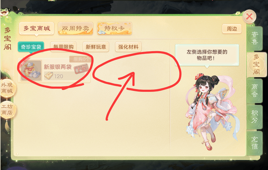 第二个重大的更新:奇珍宝袋下架!这个限时道具仅在开服前30天限量售卖,现在到期了自然会下架,不过作为自由交易服的核心收益道具,这一个月以来,开了特权卡的玩家都是靠这个获得银两保底收益。