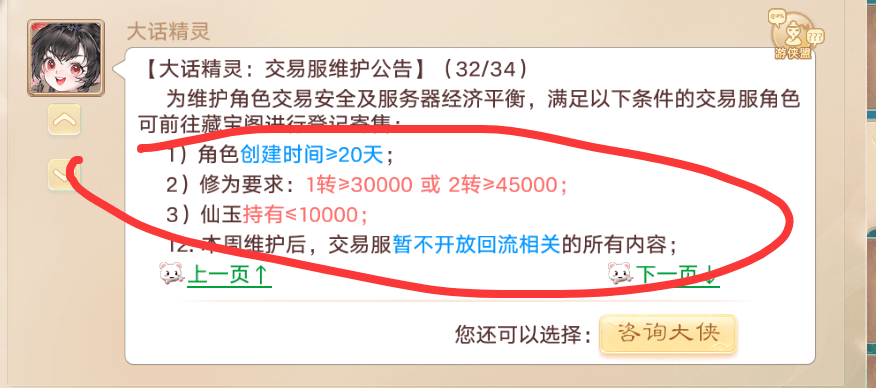 交易服角色上架的条件有三个,其一角色创建时间≥20天;其二,修为要求1转≥3万或2转≥4.5万;其三,仙玉持有≤1万,满足这三个条件就可以上架CBG。