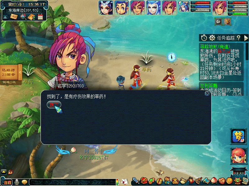 随后在林老汉(85.33)附近寻找随机位置的草药,为其治疗伤势。东海湾稳定后,通过樵夫(36.12)传送至宝象国。