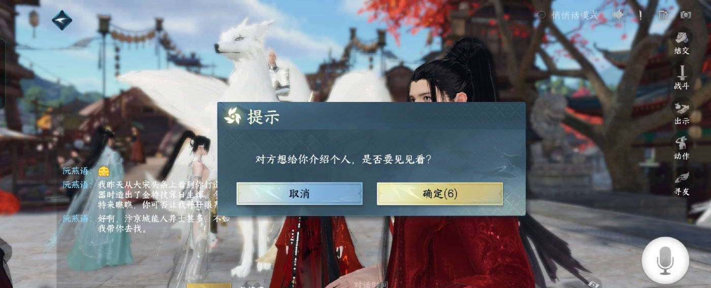 有玩家表示自己在和npc聊天聊到一半,对方就想给自己介绍对象,不得不说《逆水寒》手游的npc是真的忙,谁家npc还包揽玩家的终身大事啊?还得是《逆水寒》手游。
