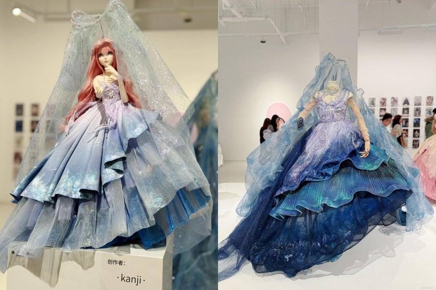 在这里,你也能又一次认识到永远卧虎藏龙的暖妈圈。手作区就是一个让人瞳孔地震的地方,那些光看原画都觉得工艺复杂的高定礼服,在这里竟然被一针一线地还原了出来。