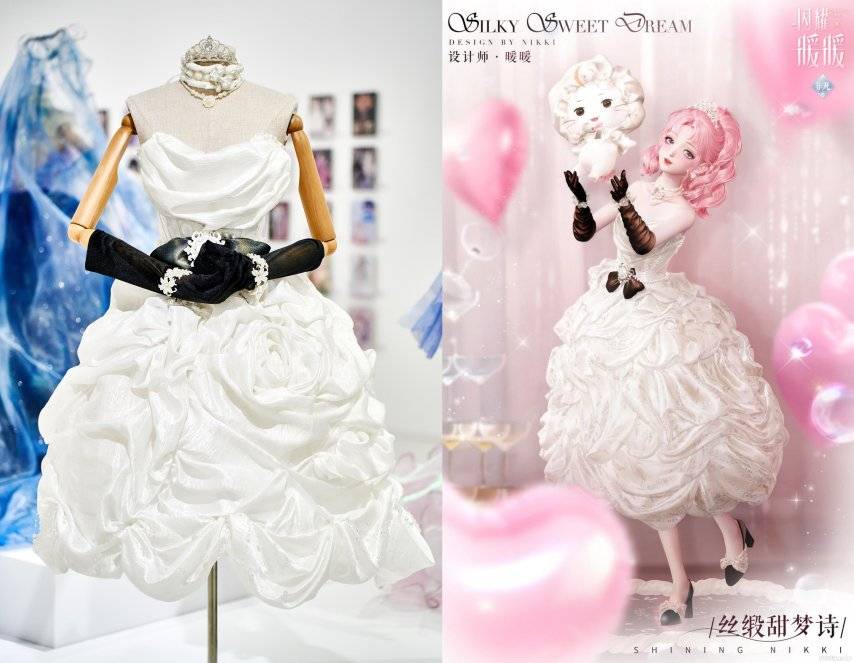 12月才刚刚上线的生日套装“丝缎甜梦诗”,它的实体版竟然在十天后就出现在了展台上,如奶油打褶般的质感收获了玩家一片惊叹。