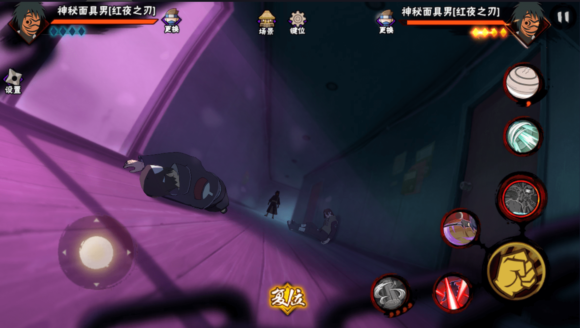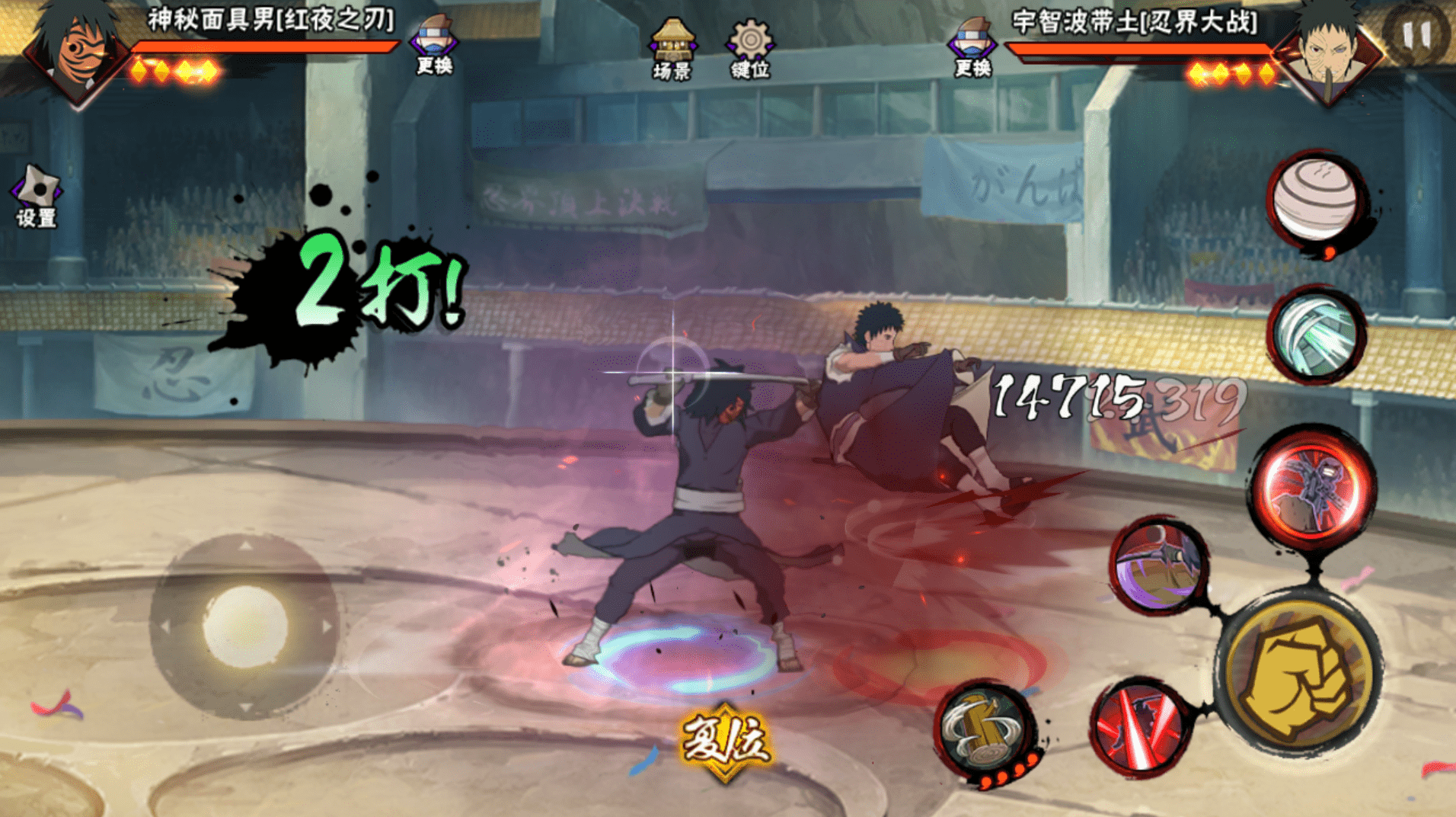 简单来说就是第一段的虚化时间较短,你以为可以先第一段虚化观察替身后的情况,但还没来得及点第二段就被对方的攻击命中了。还有一种情况就是在高频率攻击的通灵范围内,你想要虚化完美衔接跑出去,最难把控的也是第一段和第二段衔接。像红夜带土和忍战带土这类直接释放的移动虚化效果,你手里只有一个豆,很容易会在替身后拿不到先手,这也成了红夜带土在对战的时候经常碰到的情况。这个忍者的奥义伤害不算高,命中后无法替身,但可以被顶掉,需要注意的是在顶掉奥义后红夜带土依然是会有一段攻击,所以你要尽快拉开一定的范围才行。