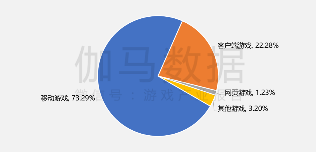 按平台划分,移动游戏仍占据主导,实际销售收入占比达73.29%;客户端游戏显著增长,占比22.28%;网页游戏继续萎缩,仅占1.23%。