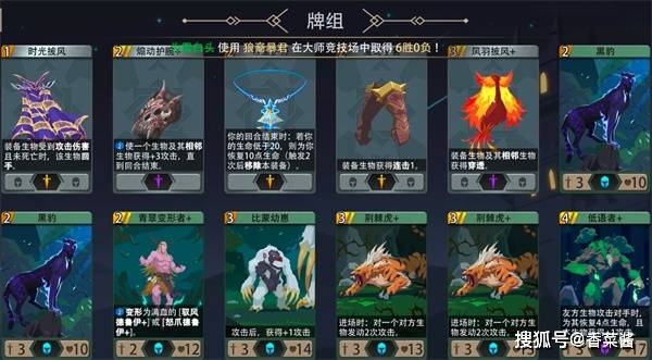 开局删两恐狼,抽两次生物和一次装备,尽量抽一个3费打手开局,实在抽不到就拿山岭巨人或独角兽这样的4费打手过渡也行,如果能拿到好的生物装备(毁灭之斧 魔蛇手套)可以直接开局,前期有余钱就先升荆棘虎方便解梦魇,金币充足可以考虑拿一张穿透卡(飞行术&凤羽披风)来应对邪影术士。