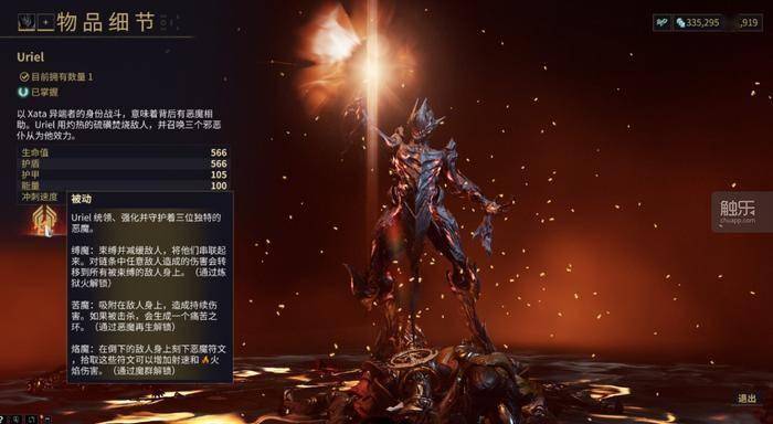 就目前体验而言,Uriel可成为新玩家的首选战甲之一。其基础强度较高,在前期主线中便能轻松应对战斗。设计上,Uriel延续了《Warframe》一贯的生物科技融合风格:静止时,盔甲关节处燃着悲怆的火焰,呈现被束缚的扭曲恶魔形象;运动时,战甲随技能释放迸发魔焰,战甲一技能可以在空中进行螺旋飞行——其召唤的三个恶魔各具特色,可通过自爆对周围敌人造成大量伤害。