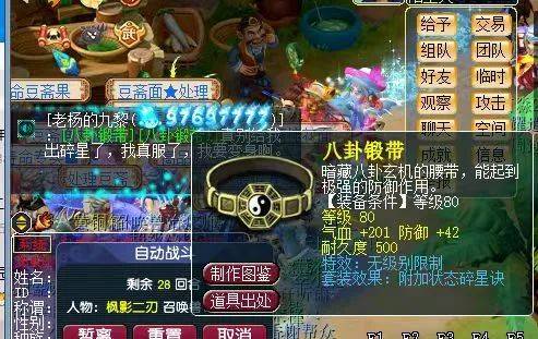 近日,有位九黎城小伙伴在点化装备时,点出了一条80级无级别、碎星腰带。但由于其想要的套装为变身套,接连出碎星属实让其有点崩溃。对此,猪队长只能表示,无论变身还是碎星,都能起到增加伤害的作用,如果不追求极致的话,点个碎星套也确实可以将就用。不知道各位小伙伴觉得,九黎城是带变身套好,还是带碎星套好呢?