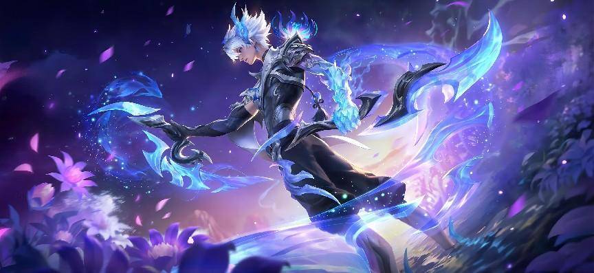 这款FMVP皮肤其实在12月份已经正式公布。在逐花归海-澜这款皮肤的海报上,我们能够看到这款皮肤整体以忧郁的蓝色和高贵神秘的紫色作为主色调,非常华丽。