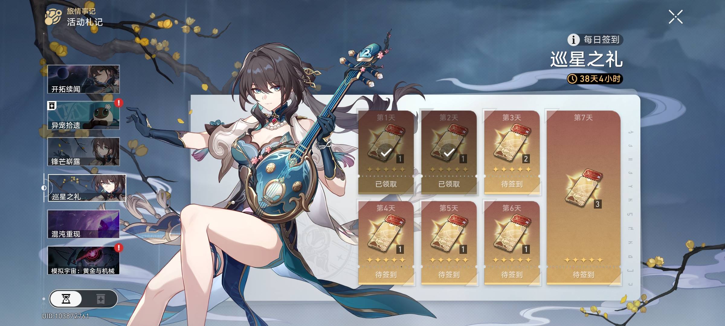 说明:算是常驻活动了,版本期间任意登录7天就行,轻松简单,属于所有活动中最高性价比的。