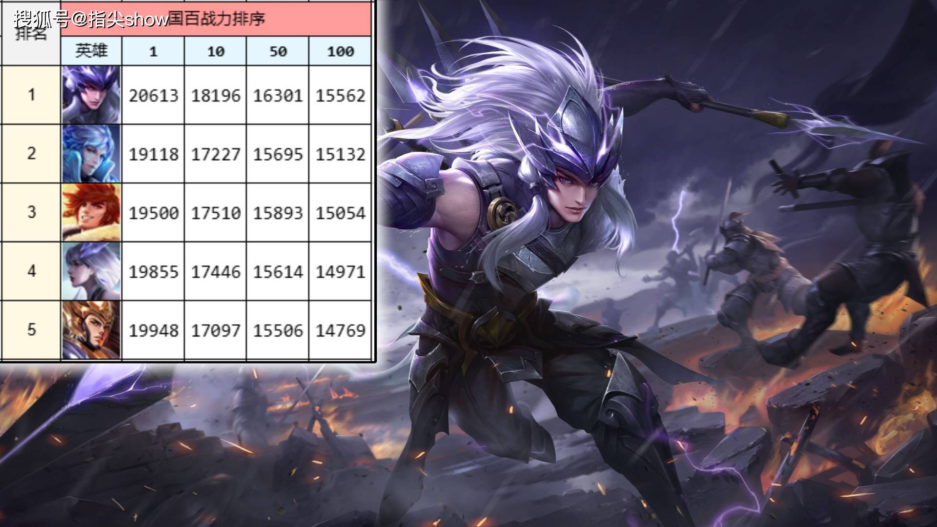 国百战力前五,分别是马超、诸葛亮、裴擒虎、镜和杨戬,其中马超、诸葛亮和杨戬都是双位置英雄,在打战力方面有着先天的优势。