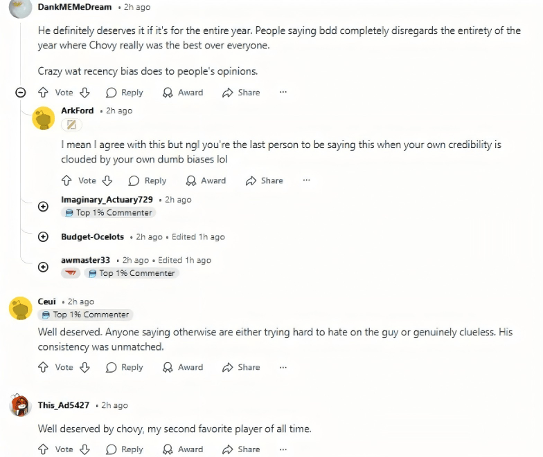该年度评奖的结果公布后,就在各个赛区掀起轩然大波,大家除了困惑Faker差点颗粒无收之外,更对评奖的打分机制提出了质疑,搞不懂为啥BDD拿了年度最佳选手,却无缘年度最佳中单,以及为啥Gumayusi能拿到最佳下路,但多兰却无缘最佳上单选手。