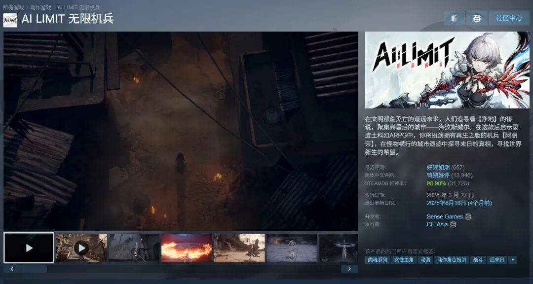 《无限机兵》如今在Steam拥有超过1.3万条评价