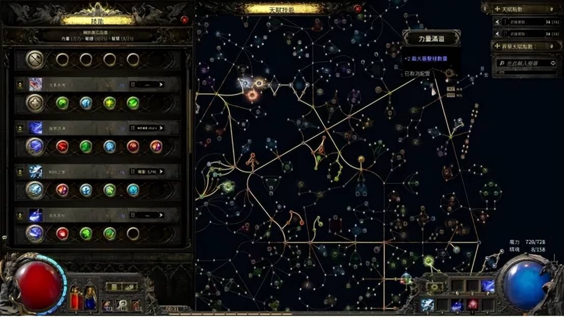 即使在今天,面对POE在十几年前创建的这套天赋树系统,你也很难不称其为杰作,在一个树状展开,如繁星密布的天赋系统中,玩家要从中找到一条符合自己心意和想法的“路”。这几乎是在穷尽天赋树系统的设计可能性,千多个不同天赋,除去部分属性加成外,一个个被动技能的存在,让POE单凭天赋搭配就能玩出无数花样。