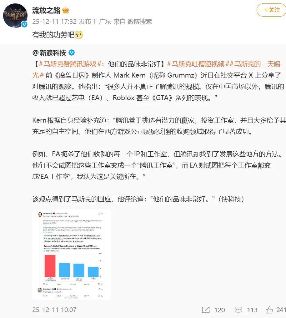 前段时间,外网著名的KOL“Grummz”(就是大家熟知的那位反政治正确先锋)在X上大夸腾讯,得到了马斯克的响应:“他们(腾讯)的品位非常好。”