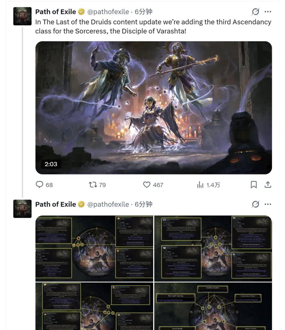 而更加离谱的地方在于,原本玩家们已经摩拳擦掌准备好在新版本里狂玩德鲁伊,释放自己的野性。结果在他们深入研究德鲁伊的十八种变身姿势之际,POE2官方突然袭击,宣布除了德鲁伊之外,还会在新版本中加入魔巫的第三种升华职业——瓦拉煞的门徒。