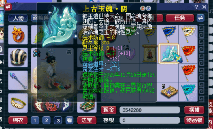 昨日,“葬爱家族”一位玩家为提升任务实力,亲自跑起魂铸任务,竟意外获得一枚极品后排玉魄。这枚玉魄不仅拥有双法防一防御的完美属性组合,更附带了2.1%的奇袭法术词条,能显著提升佩戴者二次使用技能的概率,因而备受PK大佬青睐。