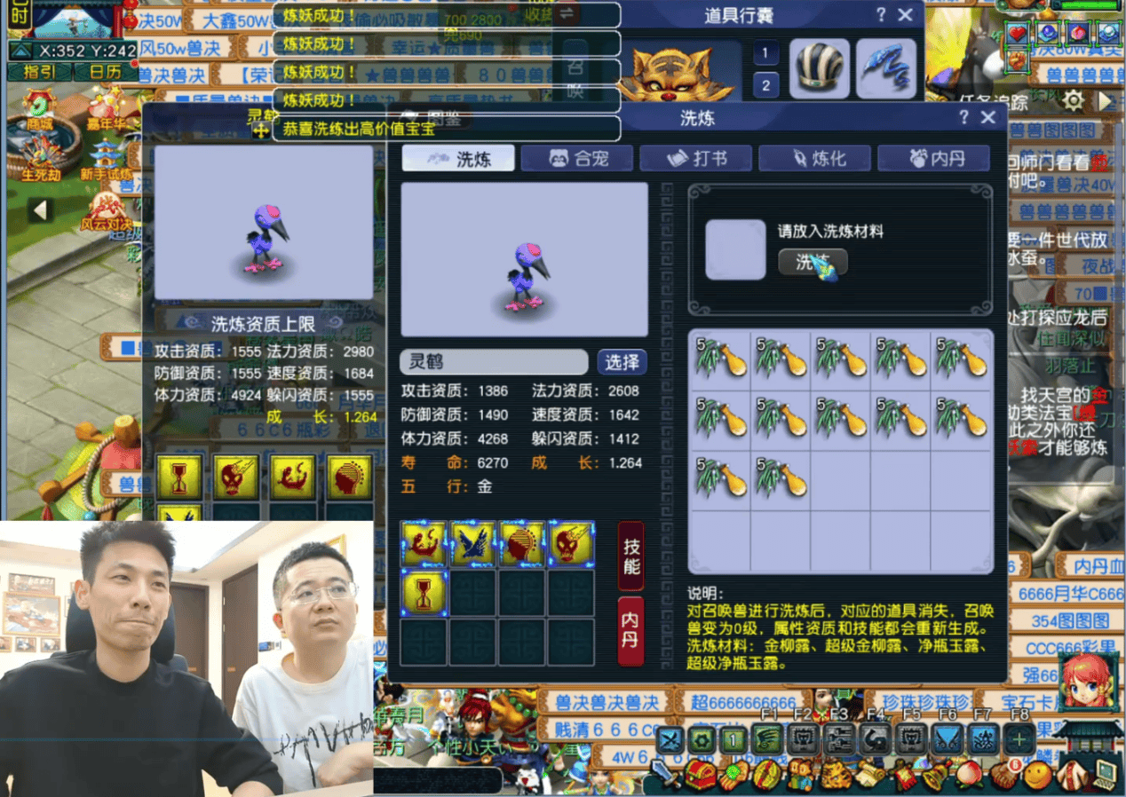 好在洗炼变异灵鹤时,旭旭宝宝手气爆棚——接连洗出两只极品5技能灵鹤!总算是化解了此次直播的“翻车危机”。