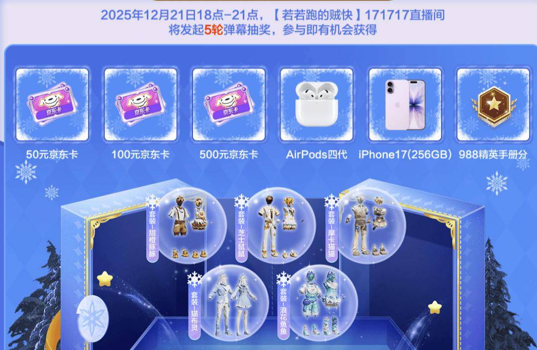 每轮游戏结束都会开启弹幕抽奖,iPhone17 256G、AirPods四代、套装-甜橙豚豚、套装-芝士鼠鼠