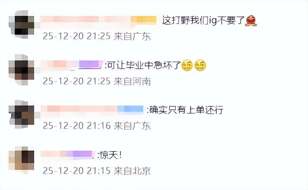 对此,很多网友都对Wei现在的状态表示担忧:“我只能说明年是ig的粉丝有福了”,“很难想象去年ig带着这么个打野拿到的四号种子”,“大家给点时间吧”……