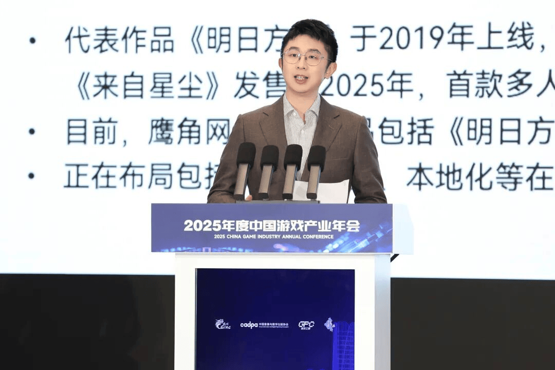 上海鹰角网络科技有限公司联合创始人、CEO黄一峰在大会发表题为《焕新与共鸣:科技赋能下的游戏文化新实践》的主题演讲,强调游戏作为新兴文化载体,正在通过新兴技术、创新体验与跨界生态,推动传统文化从单一符号呈现转化为可体验、可参与的内容形态呈现,并以《明日方舟:终末地》、“明日方舟:集成映射——沉浸式线下展”、大白兔ip联动为案例,详细介绍了鹰角网络在实践游戏文化传播中的经验与心得。黄一峰指出,企业要依托于对中国传统文化的深度挖掘,以新质生产力为核心,从游戏内容、玩家共创与跨界生态等层面,对传统文化进行现代化“转译”,让文化在数字世界中自然生长、焕发新生。