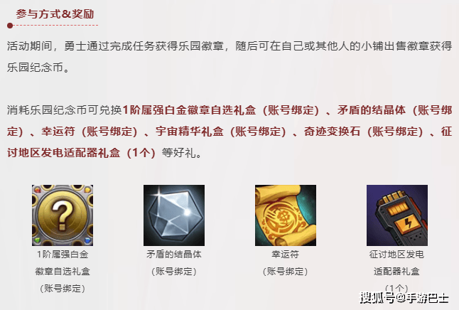 【2】“乐园小店2.0”上线!该活动将于12.31号更新后上线,核心玩法为:完成指定任务获得“徽章”,然后卖掉徽章可获得“硬币”,再用硬币对兑换各种道具!比如白金属强徽章、矛盾结晶体、幸运符等,这个活动奖励还算是比较不错的,算是开年的第一个重磅小游戏了!