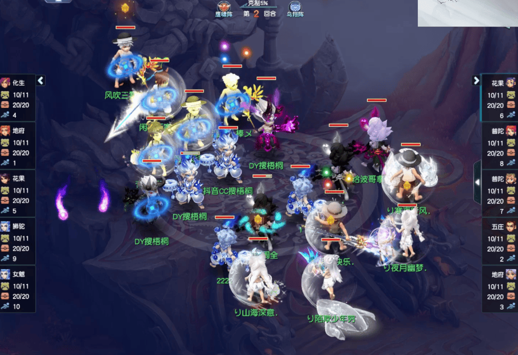 珍宝阁(观战方):花果、双咒师普陀、五庄、地府。