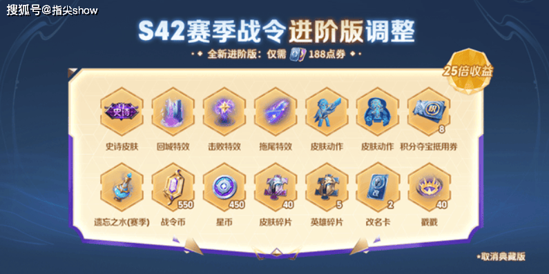 战令价格固定188,并取消典藏战令,对轻氪党而言是好事,至少能拿到一个史诗,和赛季皮肤升级资格,性价比极高。