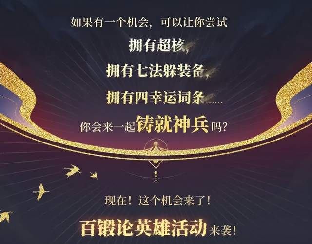 组队报名天尊真武坛·冬季赛、参与大千幻诡录每日任务还不足以让体内的特种兵DNA觉醒?本少侠略作思考并向你扔出一个百锻论英雄~此活动以爽玩为主,心仪词条概率UP、击杀BOSS更易掉落鬼装、手洗四幸运再度返场!哪一条都会是让你直呼“爽了”的存在~