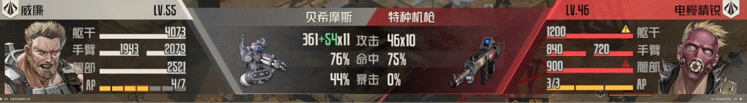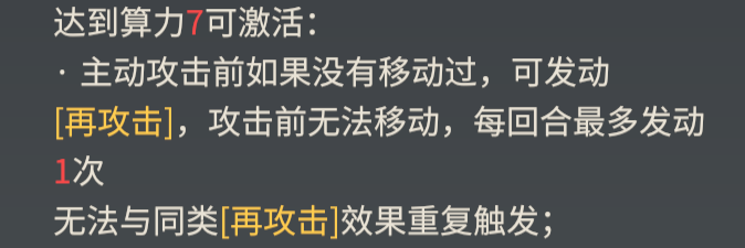 因为【架起】这个动作正好可以算是一个起手,接着立刻单体输出便可视为攻击前没有移动,完美触发“再攻击”的效果,并且刚刚给大家说的潜能1的威廉很有意义(开局5AP),在这个场景下威廉便能先用3AP的单体输出技能进行攻击,若击破部位还能立刻用2AP的普攻输出,就算不能击破部位也可以保证两个2AP普攻的连续输出,这点大家参考下即可。