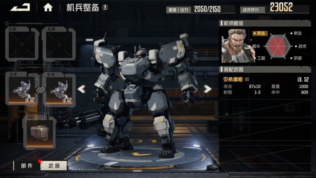 另外这里也说下威廉在带“贝希摩斯”等重量为1000的重机枪时,必须要额外带出力背包(蓝色即可)才能架得住,这就稍微有点遗憾了。