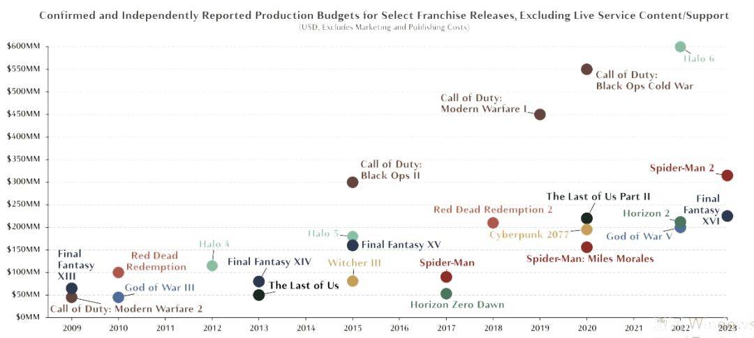 数据显示,3A游戏的开发成本年年上涨,哪怕不算营销支出,部分产品的成本也已接近6亿美元。这种“豪华赌桌”的模式无疑伴随着巨大的风险,而当3A大厂的股东开始施压,那“裁员”就是会被选择的事情。