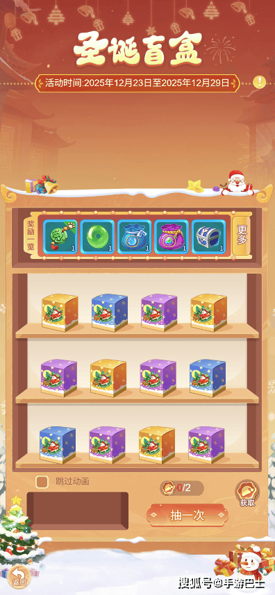 抽取圣诞盲盒需要消耗圣诞币,圣诞币可在活动期间通过完成任务获取。