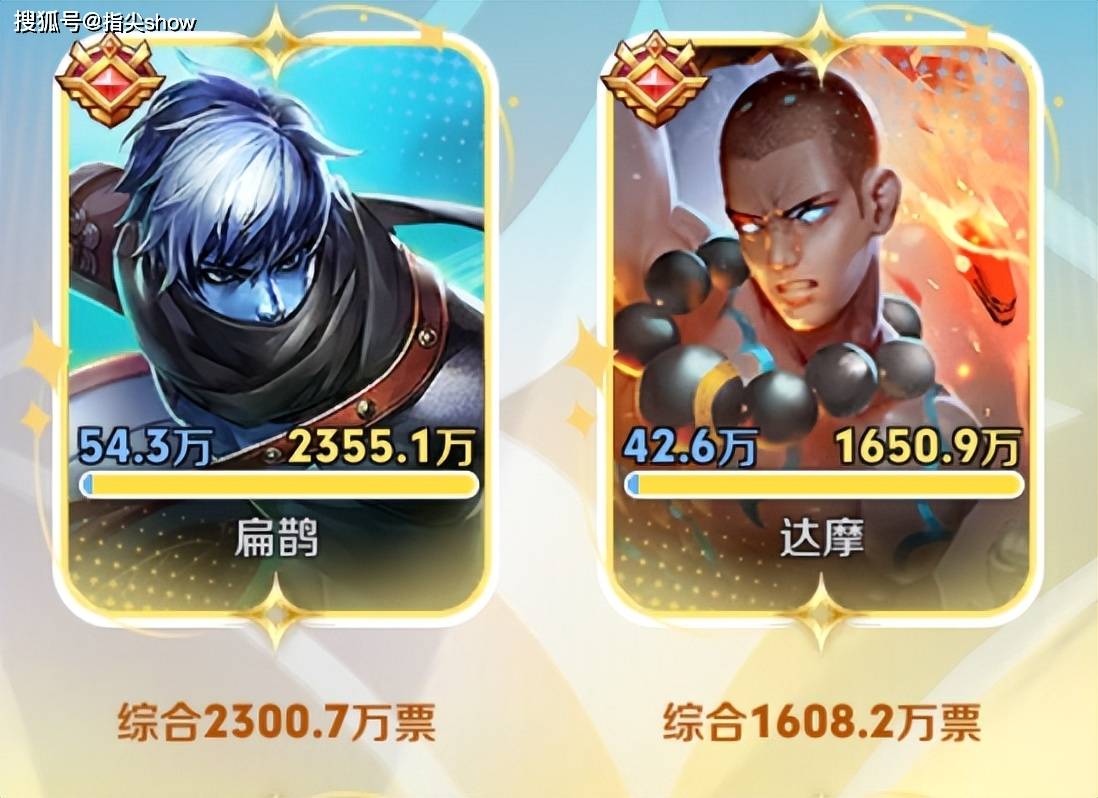达摩的票数和婉儿不分伯仲,始终在你追我赶,最终达摩的票数领先于婉儿,仅次于扁鹊,而本次英雄共创的规则就是第一名确认升级,但也会根据票数和玩家反馈,结合实际情况,综合考虑后续升级计划。