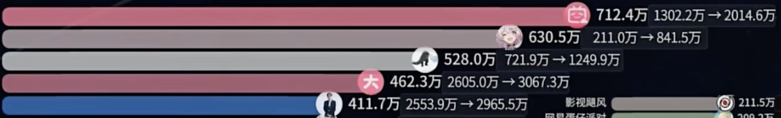 不仅仅是获得业内人士的认可,从数据来看,星穹铁道的人气在游戏圈也是独一档的。B站统计了一整年下来涨粉最多的UP主,星穹铁道官方的涨粉数排在了总榜的第二,在游戏圈中更是断层领先。这样的成绩,说星穹铁道是今年上线的游戏中最成功的也不为过。