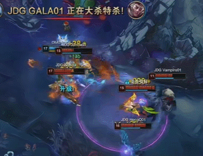 26分钟,发育完美的Gala发力了,OMG太多的技能用在假猴上了,俊佳这次的猴子立功,Gala直接闪现开始疯狂输出,一波三杀到手,团队对手,也是终于让Gala玩了一把爽局,太不容易了。