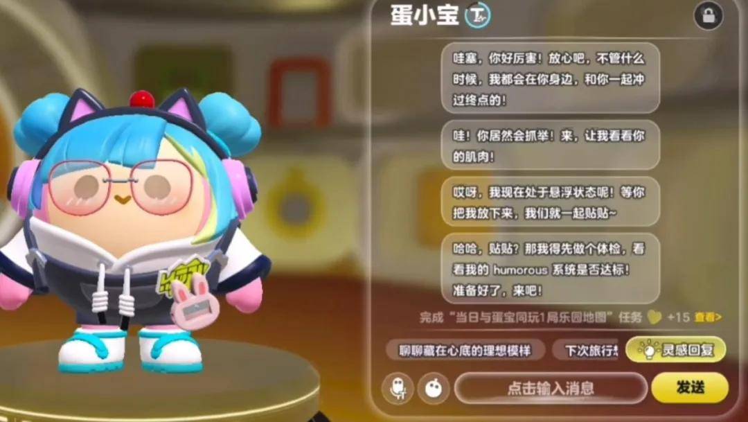 在实际体验中,AI蛋宝能够实时与玩家语音通话,根据实时的乐园探索情况给出鼓励或安慰,在卡关时积极解惑指引道路,甚至地图中的彩蛋和拍照打卡点它也会告知,真可谓是个“小智囊”。另外AI蛋宝还有陪聊功能,玩家还可在蛋宝界面与它进行文字或电话聊天,AI蛋宝会用幽默风趣,且更贴合游戏角度的例证与玩家沟通,显得有趣又不失亲和力。