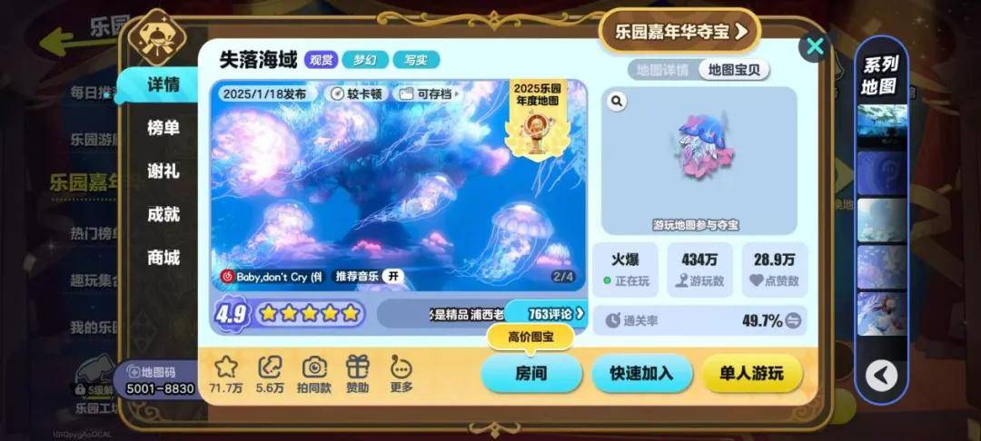 通过将“寻找珍贵物品”的心流体验植入UGC地图,游戏不仅降低了玩家的参与门槛,更在潜移默化中引导用户深入体验不同风格、不同难度的创作者内容。无论是“浦西可乐.”打造的唯美海洋馆,还是硬核操作向的《菜蛋宝宝来炫技2》,图宝的获取方式始终与地图主题紧密契合,使收集行为本身成为对创作者意图的沉浸式解读。