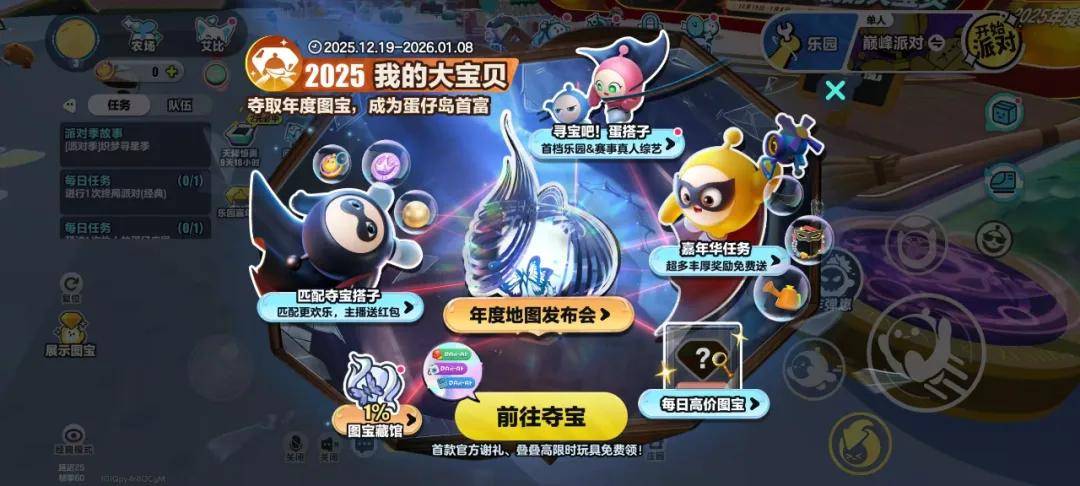 此次嘉年华以“我的大宝贝”为主题,近百名收藏家工匠蛋在年度地图中藏了一份亲手创作的UGC小组件——“图宝”,玩家需要在游玩过程中寻找解锁图宝,也可通过“进化吧!宝贝”等创新玩法为图宝锻造新样式,点亮图鉴,装点自己的收藏展架,赢取首个官方谢礼——破茧成蝶,甚至还能获得叠叠高玩具,搞怪动作表情等福利。
