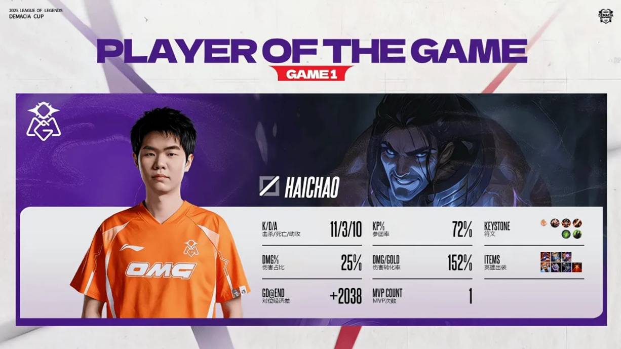 而本轮对阵BLG的比赛,OMG是继续展现出了自己作为黑马的强大爆发力,第一局比赛BLG是自选石头人放给对手塞拉斯,结果埋下伏笔,OMG前期打野不断针对中路连续两次击杀,Haichao发育很好,BLG则是连续针对下路击杀Starry。