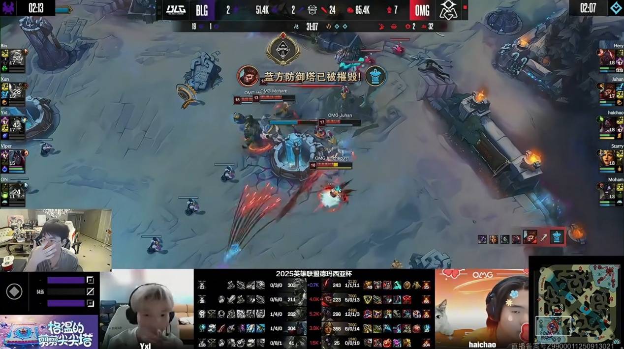 如果说第一局比赛还算是打的有来有回最后棋差一招的话,那么第二局比赛的进程就更是让人大跌眼镜了,本局OMG是全程碾压打出了人机一般的对局,BLG全程被打得毫无还手之力,观众也是彻底震惊了。