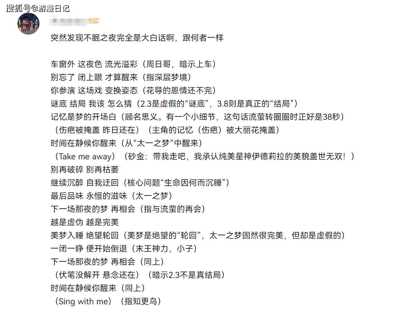 好了,各位在过完3.8版本主线后,有去回顾《不眠之夜》吗?回顾这首主题曲,你认为那段歌词现在最能打动你呢?