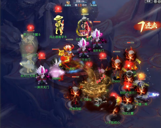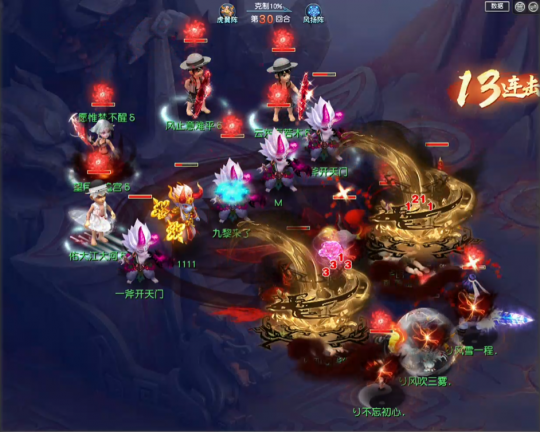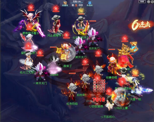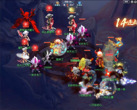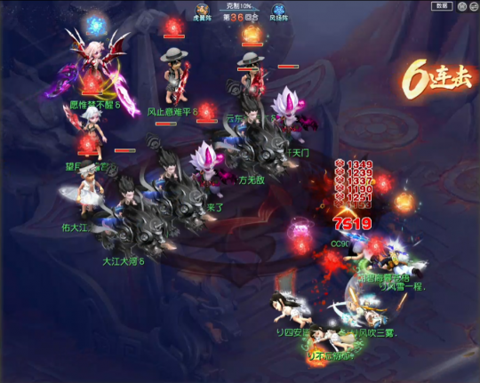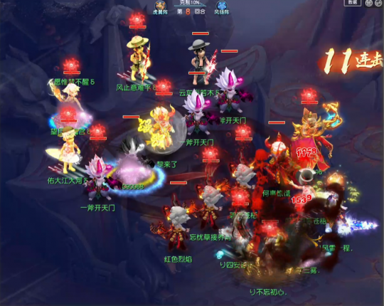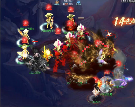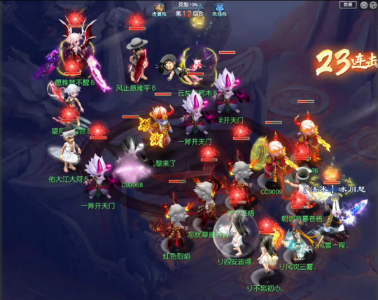 比赛第12回合时,曲阜孔庙九黎城用出“魔神四法”,一波打出7浮空23连击,直接将曲阜孔庙人物、召唤兽血量打至半血。